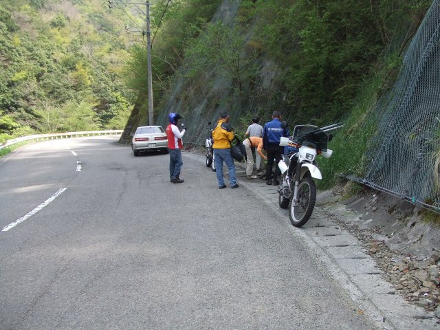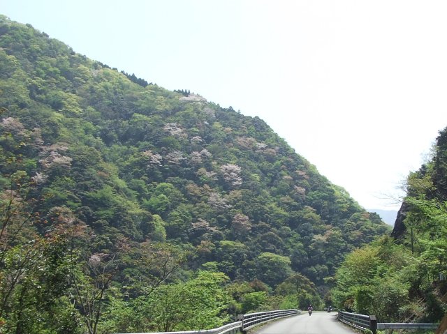 坂本山江線は山林の中を走るので、あまり開けた景色は少ないです。土砂崩れや落石が多く、アスファルトが濡れていたり、ひび割れていたりしていて結構神経を使う道です。ところどころに案内板が立てられていました。